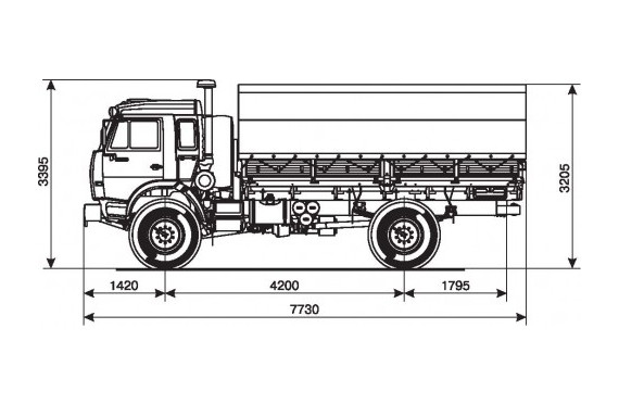 Колёсная формула: 4х4; Тип ошиновки: 1; Г/П,т.: 4; Мощность двиг. л.с.: 260; Модель КП: ZF9; П/ о главн. передачи: 5,94; V платф.куб.м./ монт.дл.рамы мм.: 18,1; Сп.место: 1; Шины: 425/85R21; Бак, л.: 2х210; ТСУ(высота ССУ): кр-пет.; МКБ, МОБ, дв. КАМАЗ-740.652-260, топл. ап.BOSCH, Common Rail, тент, каркас, лебедка, рестайлинг.