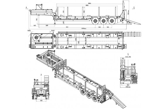 47000 кг, шины 445/65R22.5 или 395/85R20 / 6+1, платформа 9300 (10300 до трапов) x 2500 с уширителями до 3000 мм, механические трапы, пневматическая подвеска, съемные стойки 1500 мм